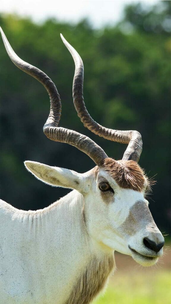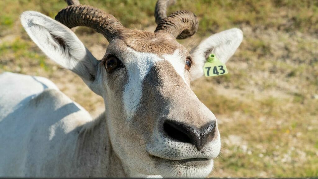 Addax live in the third pasture you enter. They will often be the first species to “greet” you as you enter the pasture.