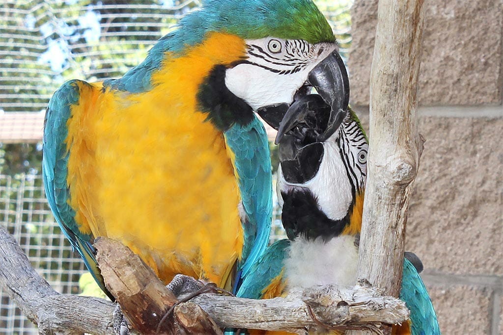 Our macaw is very used to people and will probably be easy to see if the weather is decent.