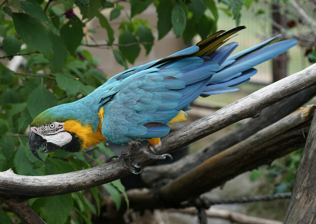 The blue-and-gold macaw is a large member of the parrot family, and has striking, colorful feathers, as their name suggests. Their wingspan can reach up to 43 inches, though they will climb more often than not and only fly to cover long distances. When in flight, these birds can reach a speed of 35 miles per hour.