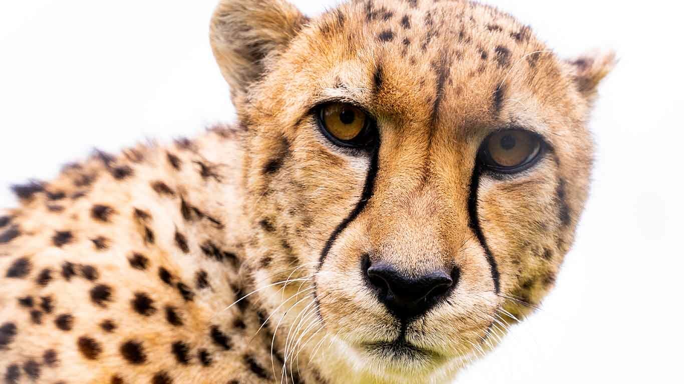 Cheetahs are one of the world’s most recognizable big cats, due to their golden coats covered in dark spots. Their eyes are surrounded by a natural “eye-black” pattern, and their tail features a unique stripe pattern that can help researchers identify them. When young, cheetah coats are puffy and lightly colored, to help cubs hide from larger species in the tall grass.