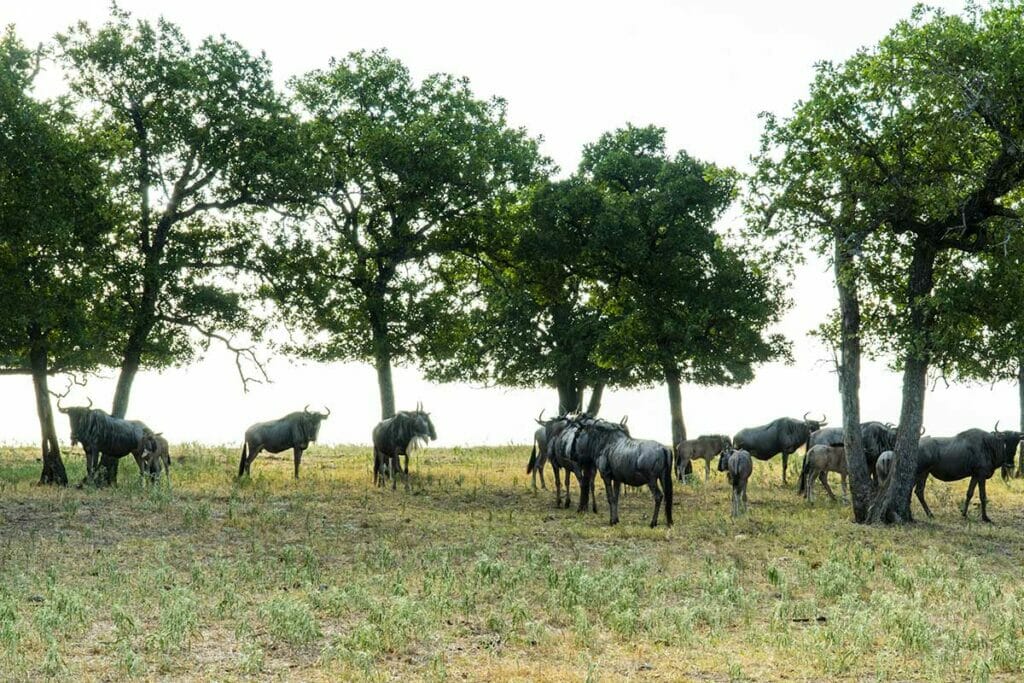If you don't see wildebeest out in the open, be sure to scan the tree line for members of the herd taking shelter.