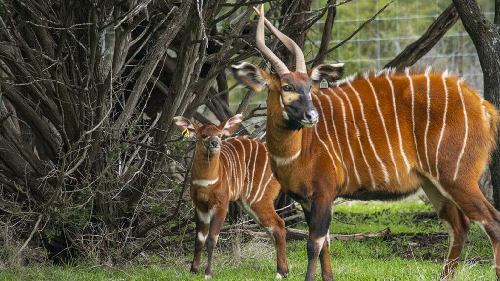 Poaching, habitat destruction, and illegal trapping for food and skins have resulted in the decline of bongo populations. Fortunately, there have been focused conservation efforts over the last few decades to help protect the species. A robust captive population and full protection under the Kenyan Wildlife Service have helped increase bongo numbers in the wild. Captive individuals from America have even been used as part of reintroduction efforts. In January of 2004, the first captive bongos were moved to the Mount Kenya Wildlife Conservancy.