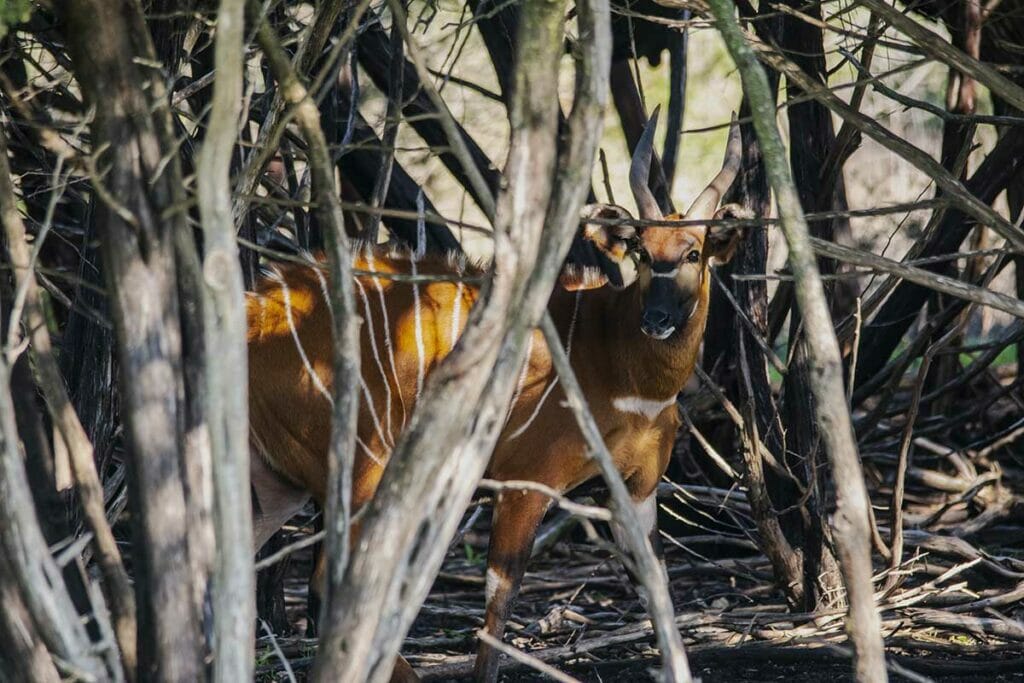 Visiting in the early morning or evening will give you the best chance of viewing these antelope outside of the trees.