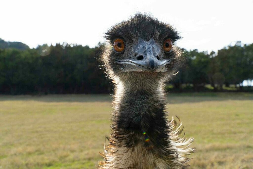 Emus are quite inquisitive and typically will not hesitate to approach you. If you don't see them, search the grass under the shade of large trees.