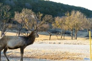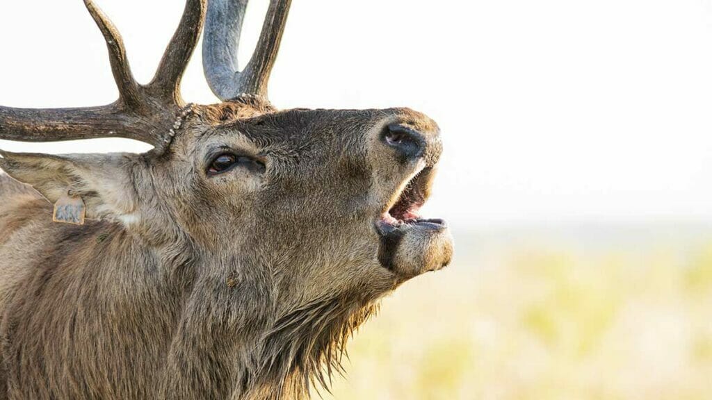 The rutting season takes place from the first of September to the middle of October, during which time there are fierce fights between the males. A male will “bugle” during the rut; this mating call is also a warning for other males to stay away from his harem. This unique song can be heard over a half-mile away. After mating season, he sheds his antlers and joins a male herd.