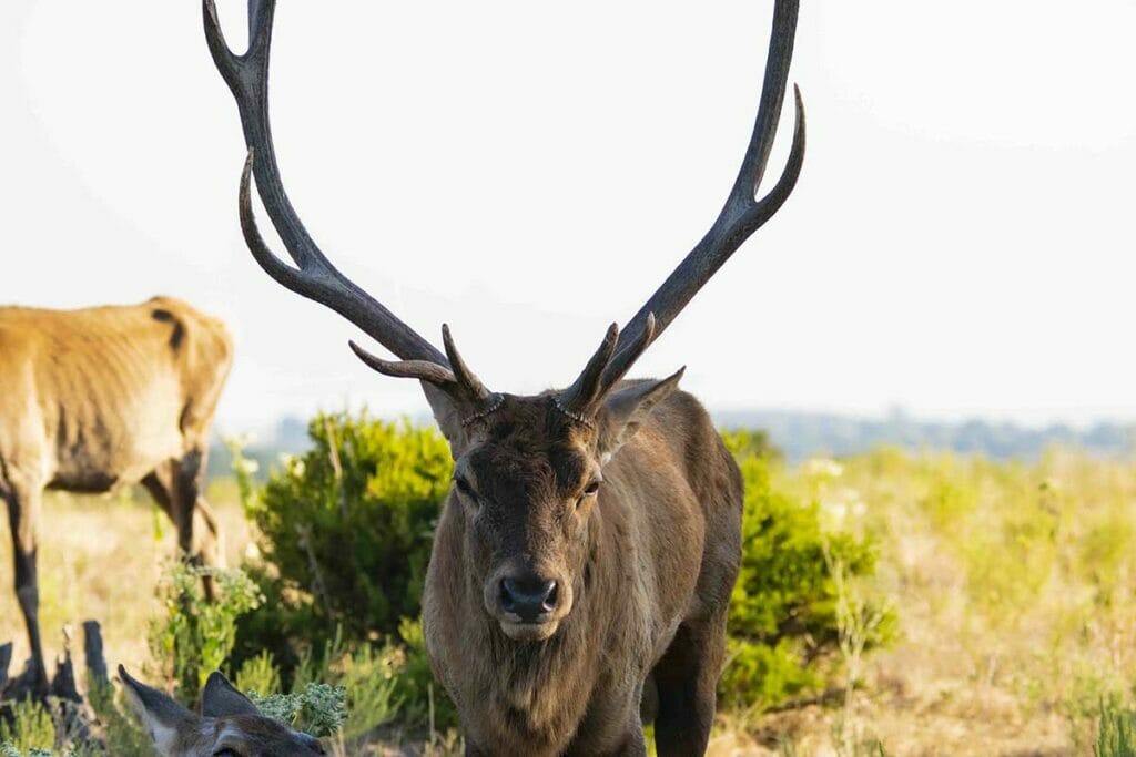 A distinguishing feature of red deer stags are their impressive antlers, which in mature adults are long and branched. Some sets get so big that they can weigh up to eleven pounds!