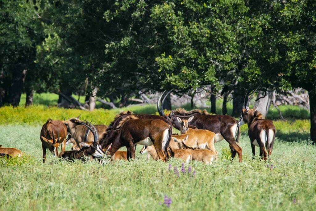 Sable antelope are known for their ability to defend themselves from predators like lions. By using their horns and sharp, pointed hooves, they can gravely wound both predators and other sable. Female sable are especially aggressive and, as a result, there is a female hierarchy system based on seniority.