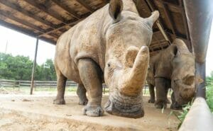 Breeding the southern white rhino has been notoriously difficult, with only a few facilities being successful. Facilities able to maintain larger social groups typically see greater success. Reproductive research using ultrasonography was pioneered at Fossil Rim, and is being used by other organizations and researchers to continue the fight to save the southern white rhino.