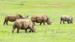 White rhinos live in herds, and will be more active if the weather is cool or if it has recently rained.