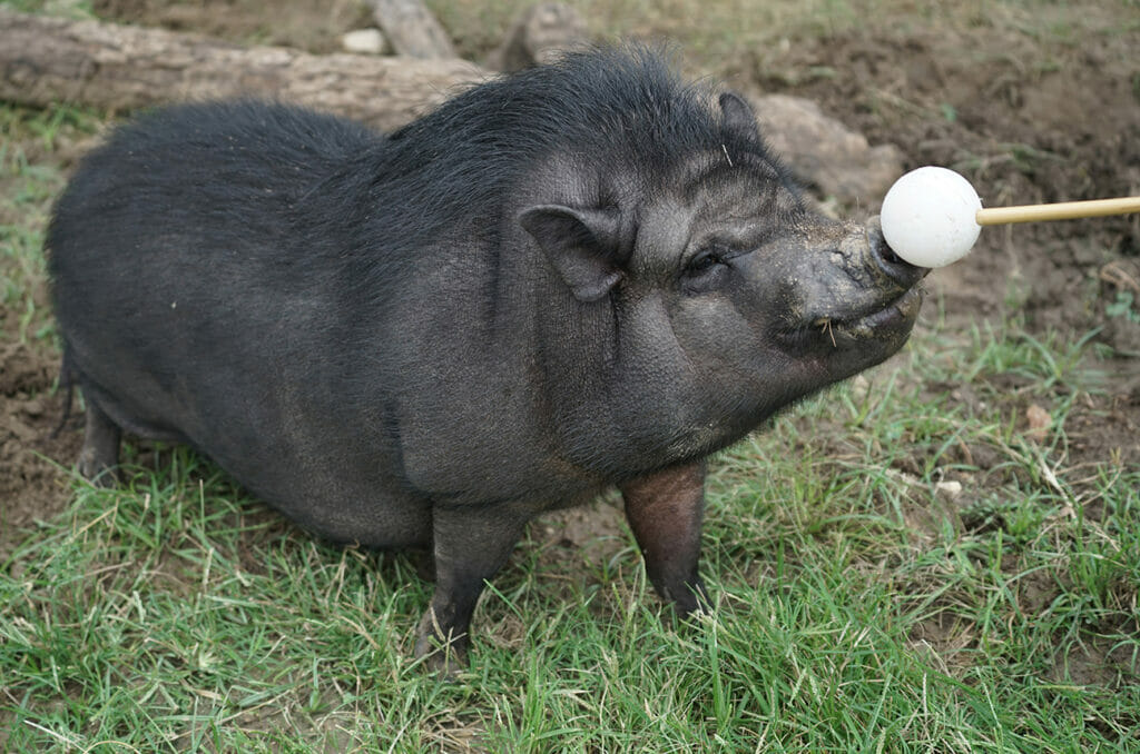 The snouts of pot-bellied pigs are smaller compared to other breeds of pigs, but they’re very sensitive to touch and provide a powerful sense of smell. These pigs are exceptionally clean and smart animals. They can be easily trained to do various tricks, and even be housebroken. Pigs love to be challenged and enjoy learning how to do new things. Pot-bellied pigs are also herd animals, which means they enjoy socializing with other animals, and would do well when put together with another pig.