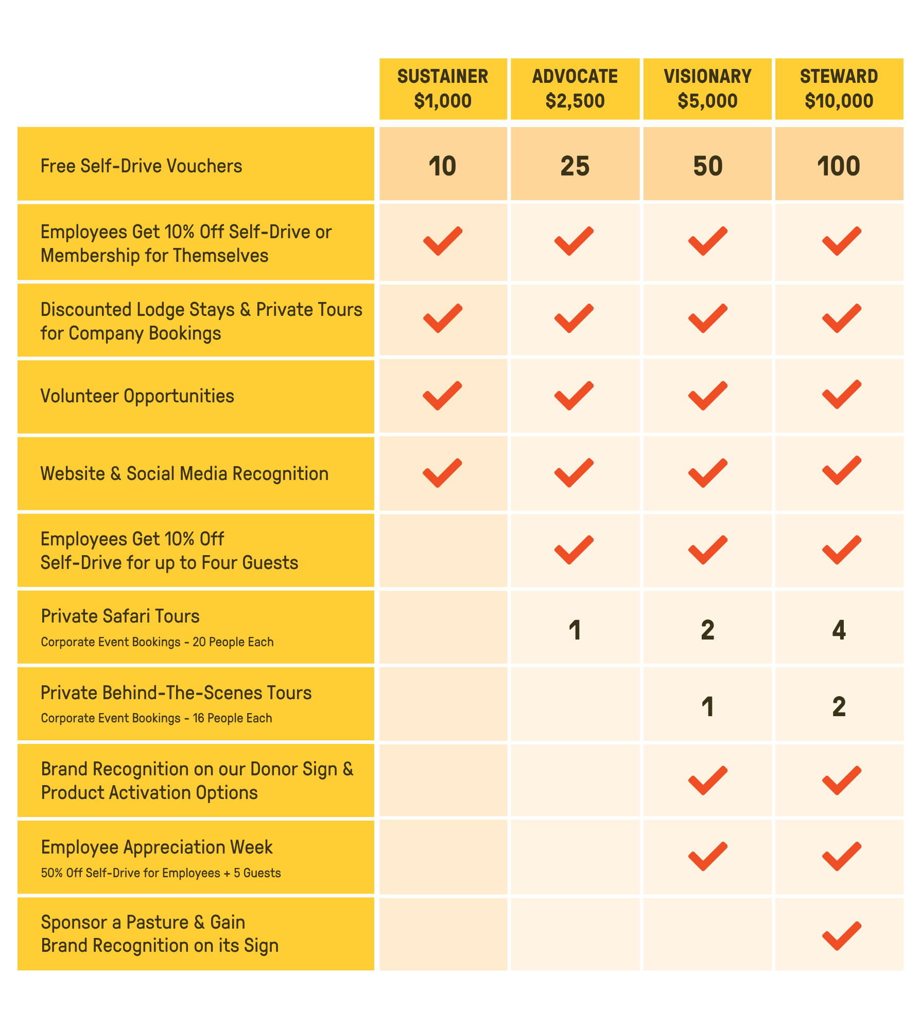 Enjoy perks like brand exposure, discounted admission, and exclusive experiences - all while supporting endangered wildlife and engaging your customers.