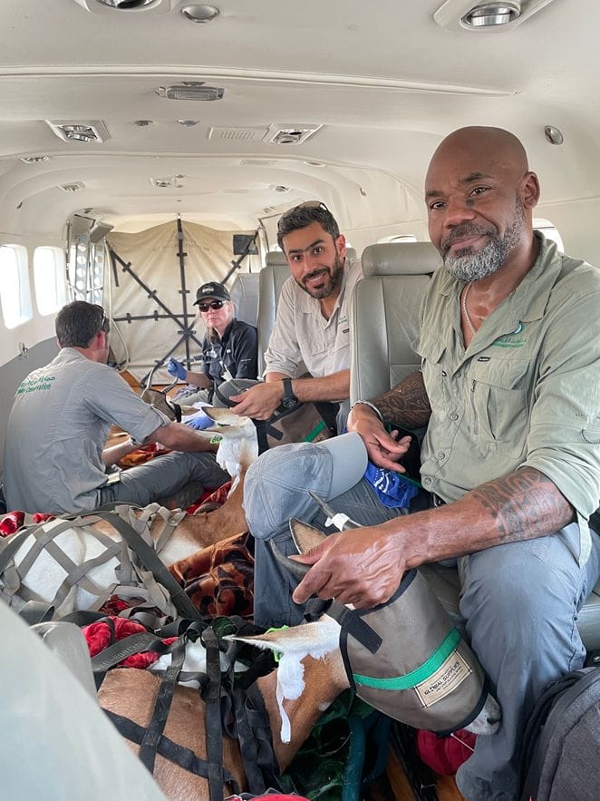 Obviously, air travel with wild animals is a complicated operation, and the safety and care of the animals are a top priority. As soon as the plane was in the air, the team opened hatches on the crates to allow the animals fresh air and provide drinking water during the five-hour flight. When they were confident that each individual was comfortable and calm, there was nothing left to do but wait. The team relaxed as best they could in the noisy cargo hold as they prepared for the rush that would ensue once they landed.