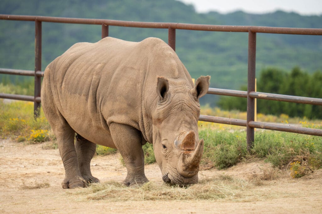 In 2023, Ursula welcomed her third calf, Rocket, who can be viewed with her and the rest of the rhino herd in their pasture. Her pregnancy gave our animal care and veterinary teams the opportunity to track her hormone levels, conduct ultrasounds and gather other valuable data. This information will be used by the American Institute of Rhinoceros Science (AIRS) to create new ways to overcome several challenges of raising rhinos in human care.